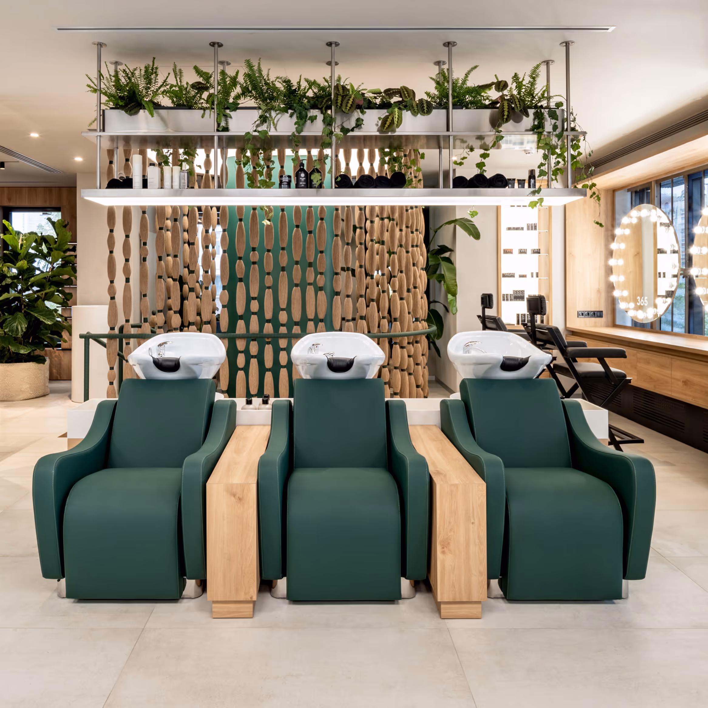 "The atmosphere of the new and largest 365 studio is all about relaxation through connection with nature and oneself.'We combined tropical energy with modern materials and digital solutions to create an oasis where not only the external transformation of guests takes place but also their deep inner renewal,' explains architect Olga Bogdanova."