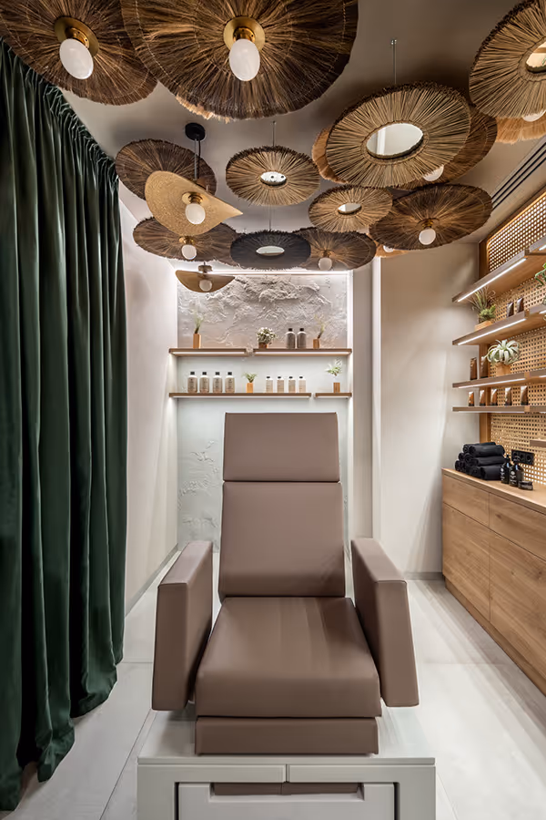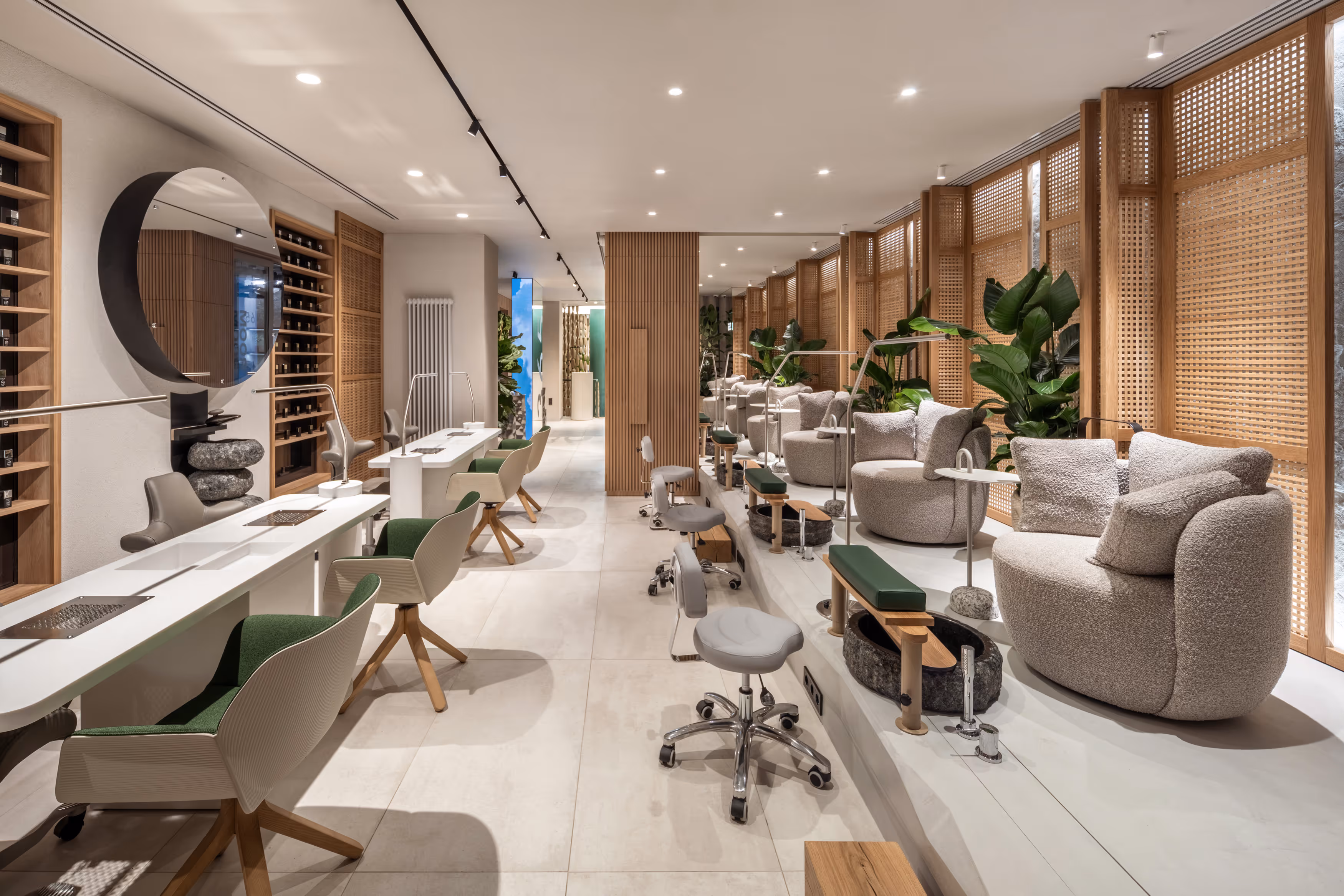 "Working on a network establishment places you within certain boundaries, as it is necessary to preserve the brand's signature colors and identity. At the same time, we needed to create a unique interior that would reveal the philosophy of 365 from a new perspective. The concept of the studio on Obolon focuses on the connection between external transformation and internal renewal. That’s why we chose the aesthetics of a paradise island, making a visit for beauty treatments feel like a kind of journey to a retreat," explains Olga Bogdanova, founder of Bogdanova Bureau.