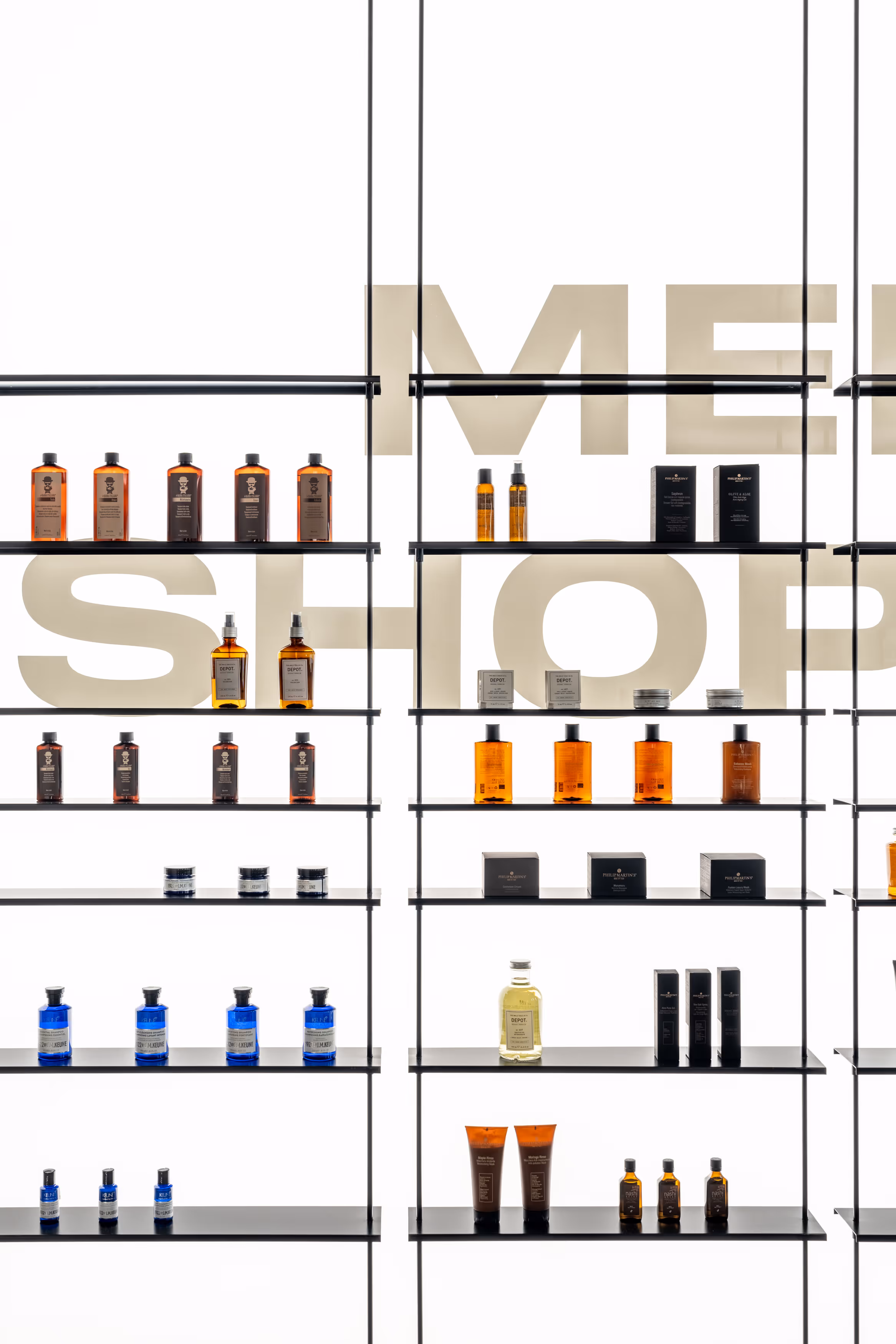 The first floor is the men's area, featuring barber chairs, manicure and pedicure stations, as well as a private VIP room for guests who prefer to be serviced alone or in pairs.