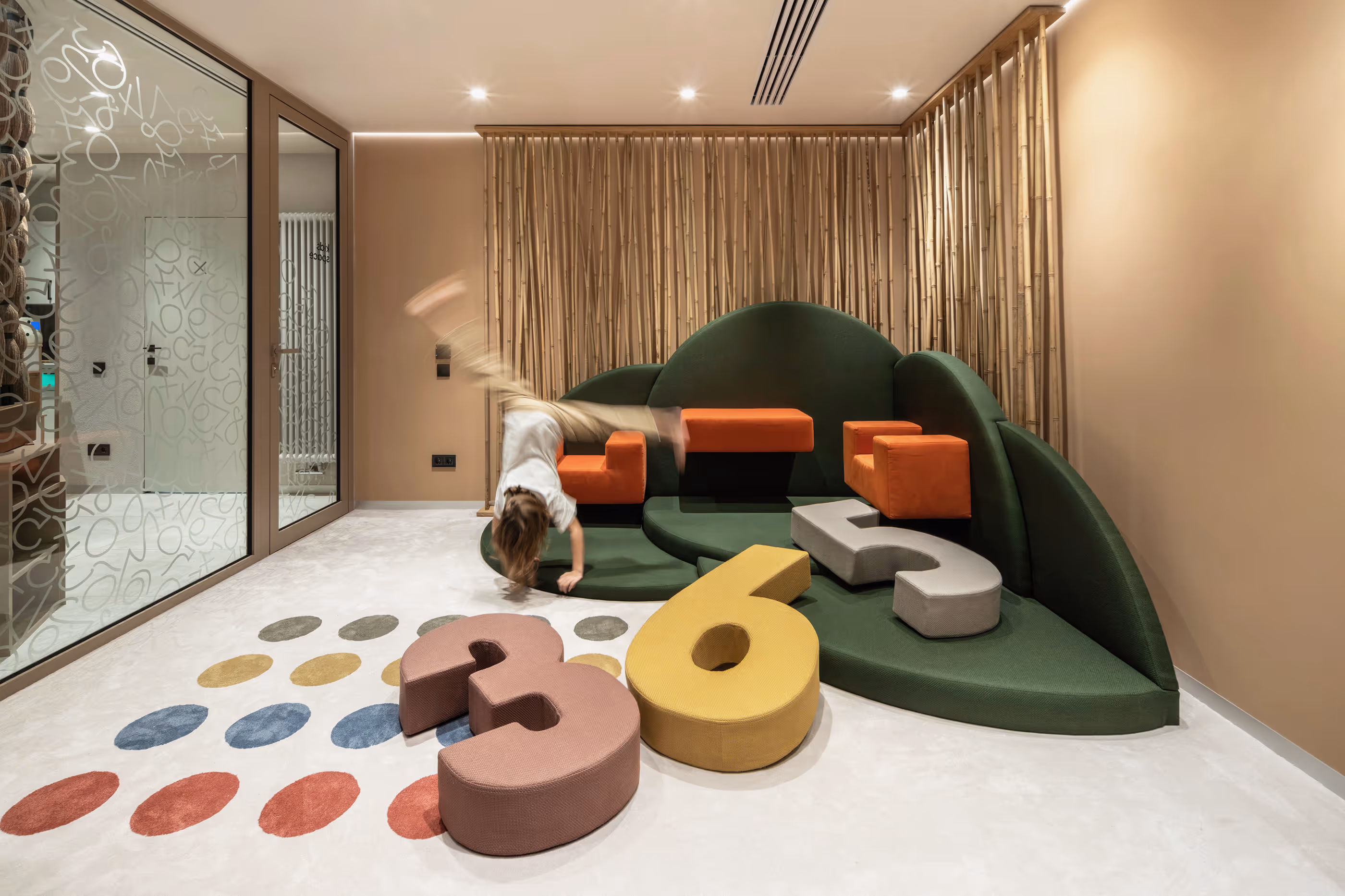 The basement level houses a children's area, which is the safest space and also functions as a bomb shelter during air raid alerts. The children's area is divided into a hairdressing hall, a play zone, and its own restroom. While parents are enjoying beauty treatments, children can have fun playing on a gaming console, a digital table, or with toys.