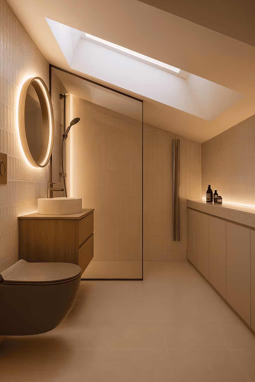 The centerpiece of the project is the new kitchen, which replaced the former living room.Thanks to its high ceiling, accent lighting, and thoughtful ergonomics, it has become the true heart of the home — a space designed for cooking with ease, gathering the family, and welcoming friends around a large table.