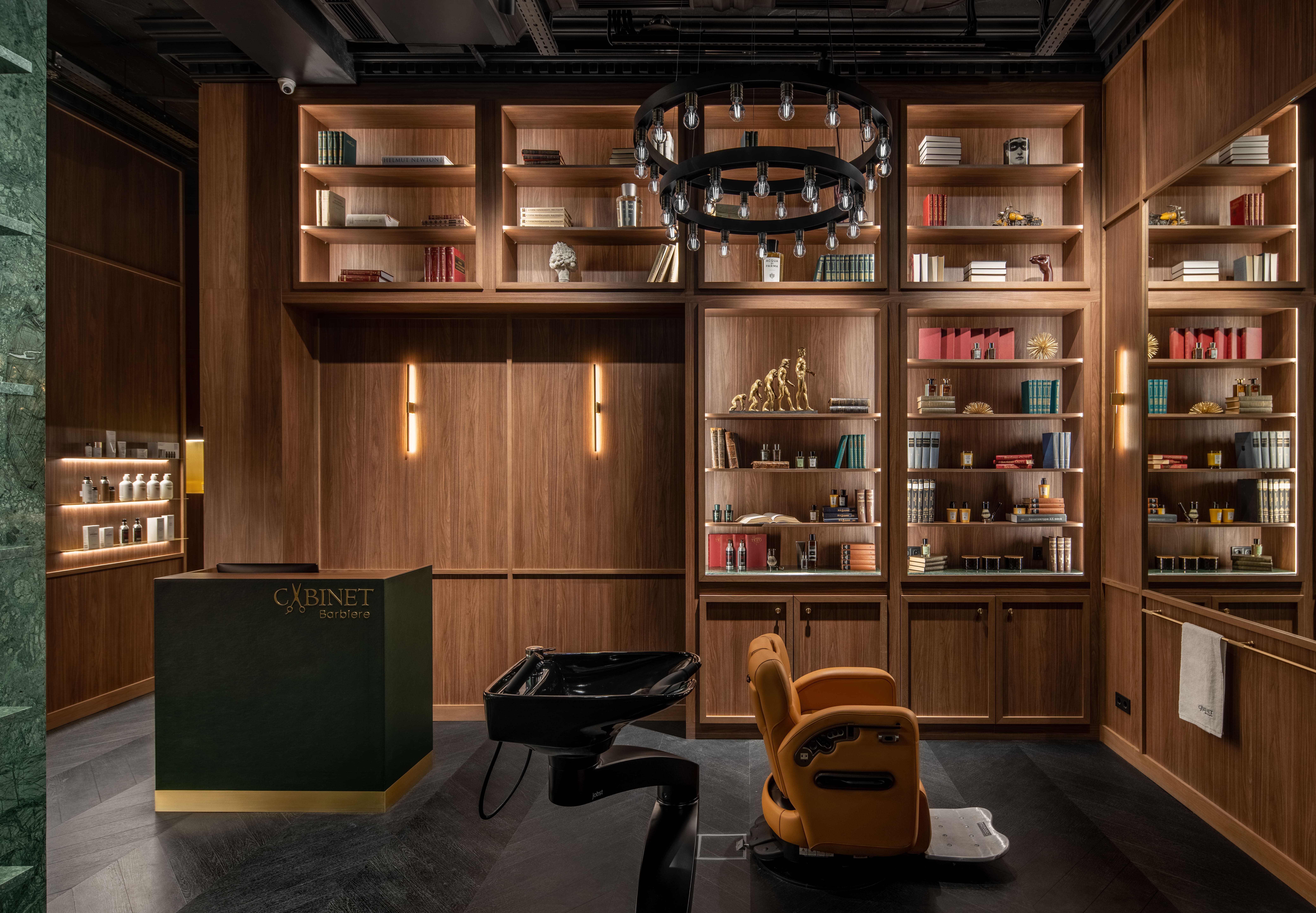 Cabinet Barbiere is an upscale beauty salon for men. The venue espouses an Italian approach to fashion and style. Cabinet was created for clients who appreciate comfort, high-level service and a unique atmosphere. One or maximum two clients could be served there at a time. For instance, two friends or business partners who could discuss some business while having procedures.