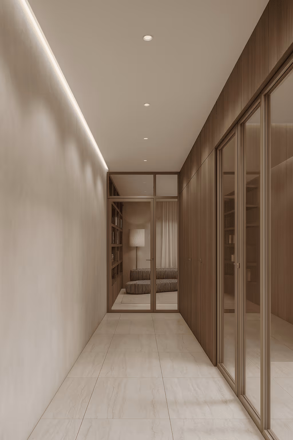 Corridors are more than just transit zones — they are an aesthetic part of the living experience. They follow the overall design concept, featuring intuitive navigation, pleasant lighting, and comfortable materials.