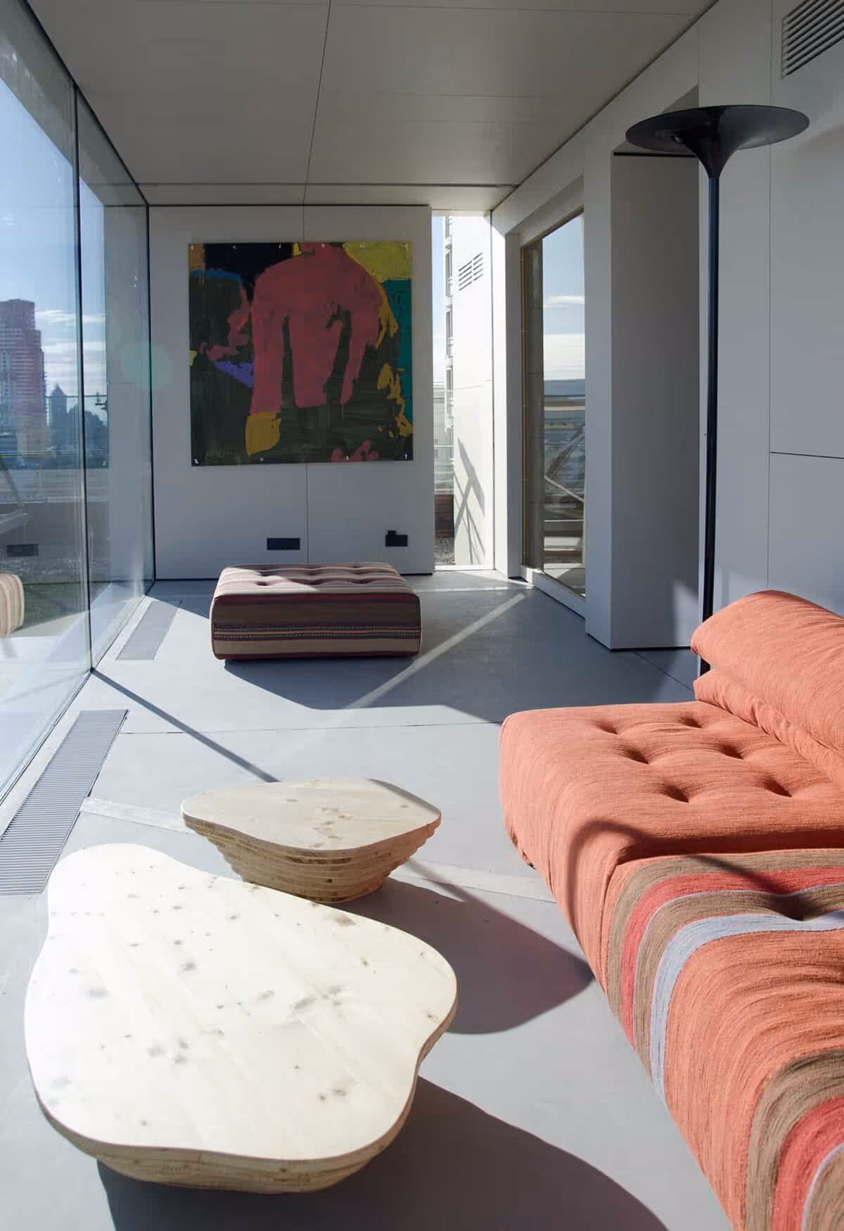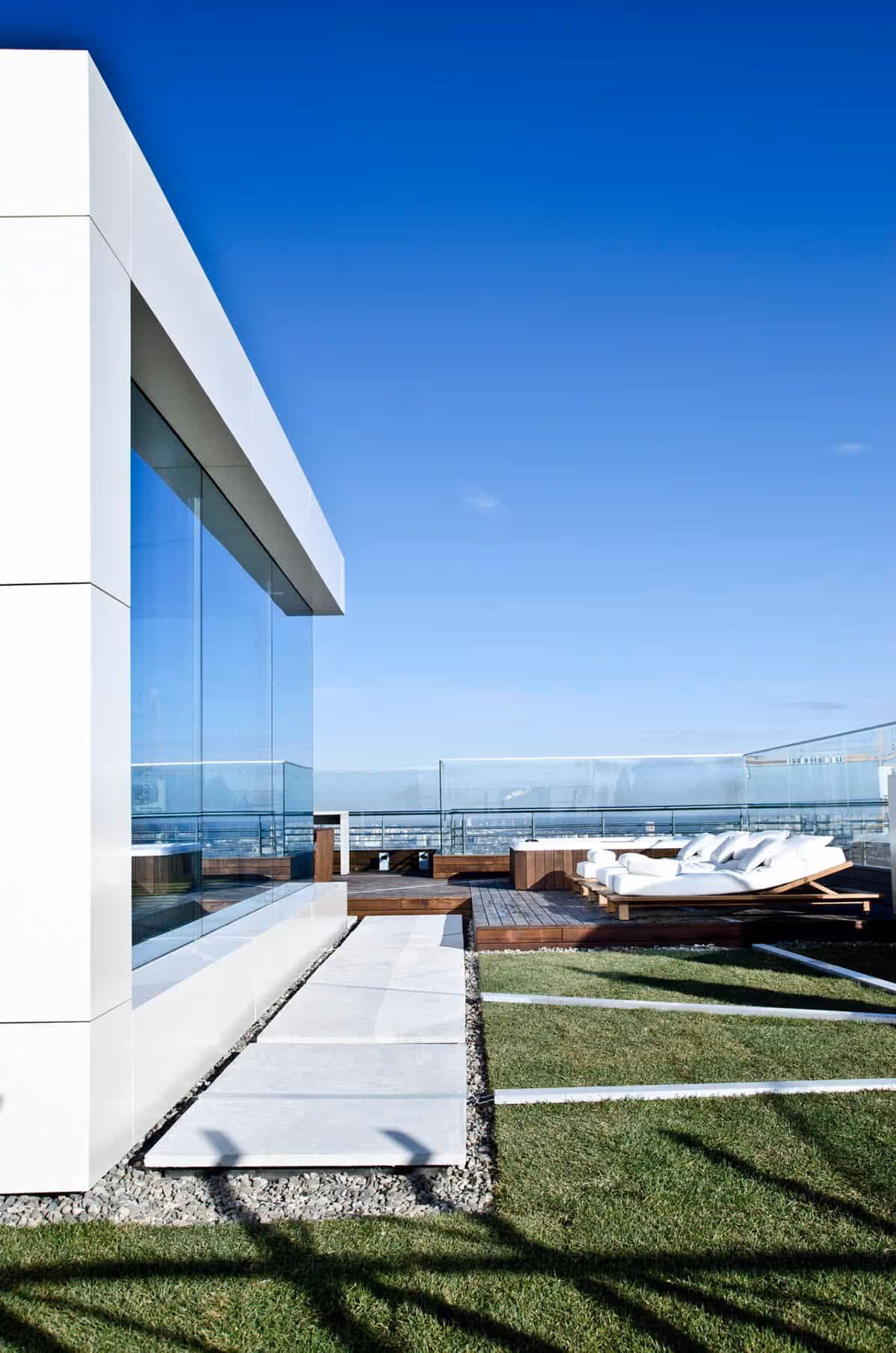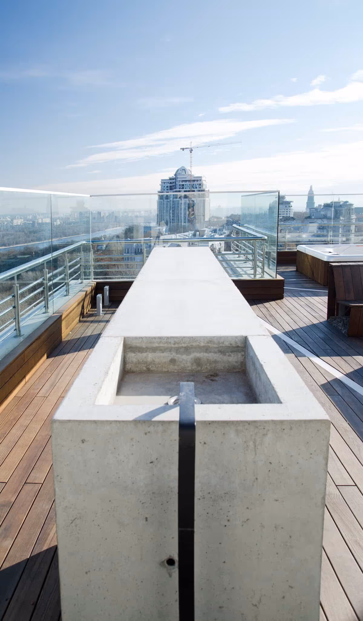 Working on the project we tried to prove to client and to ourselves that concrete could be warm, wood could be smooth and metal could be soft. It was a top floor 3-level penthouse with total space of 380 sq. m., located in the heart of Kyiv on the Dnieper river. Third floor of the apartment comprised an open terrace facing Kyiv left bank panorama on south-east with total space of 250 sq. m.