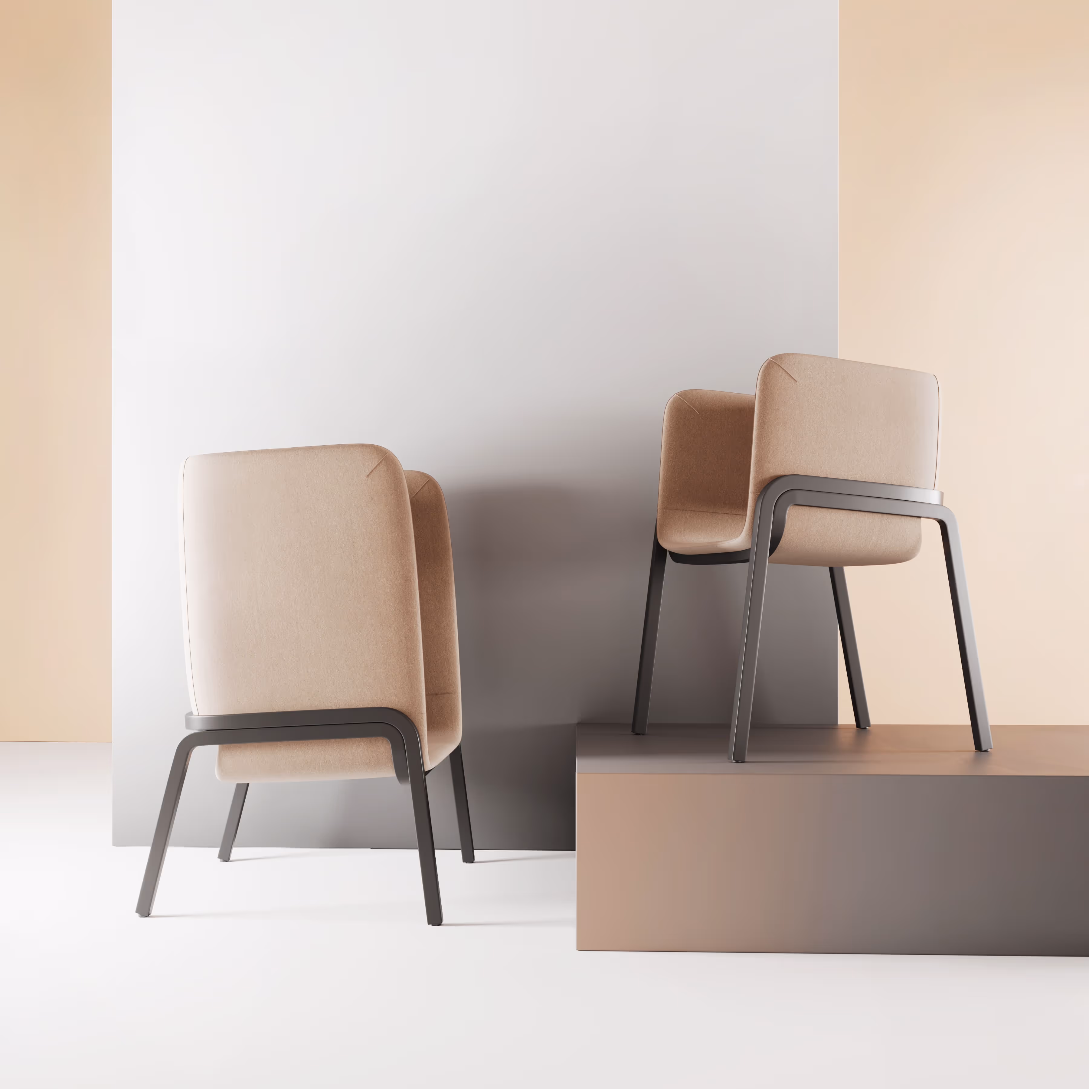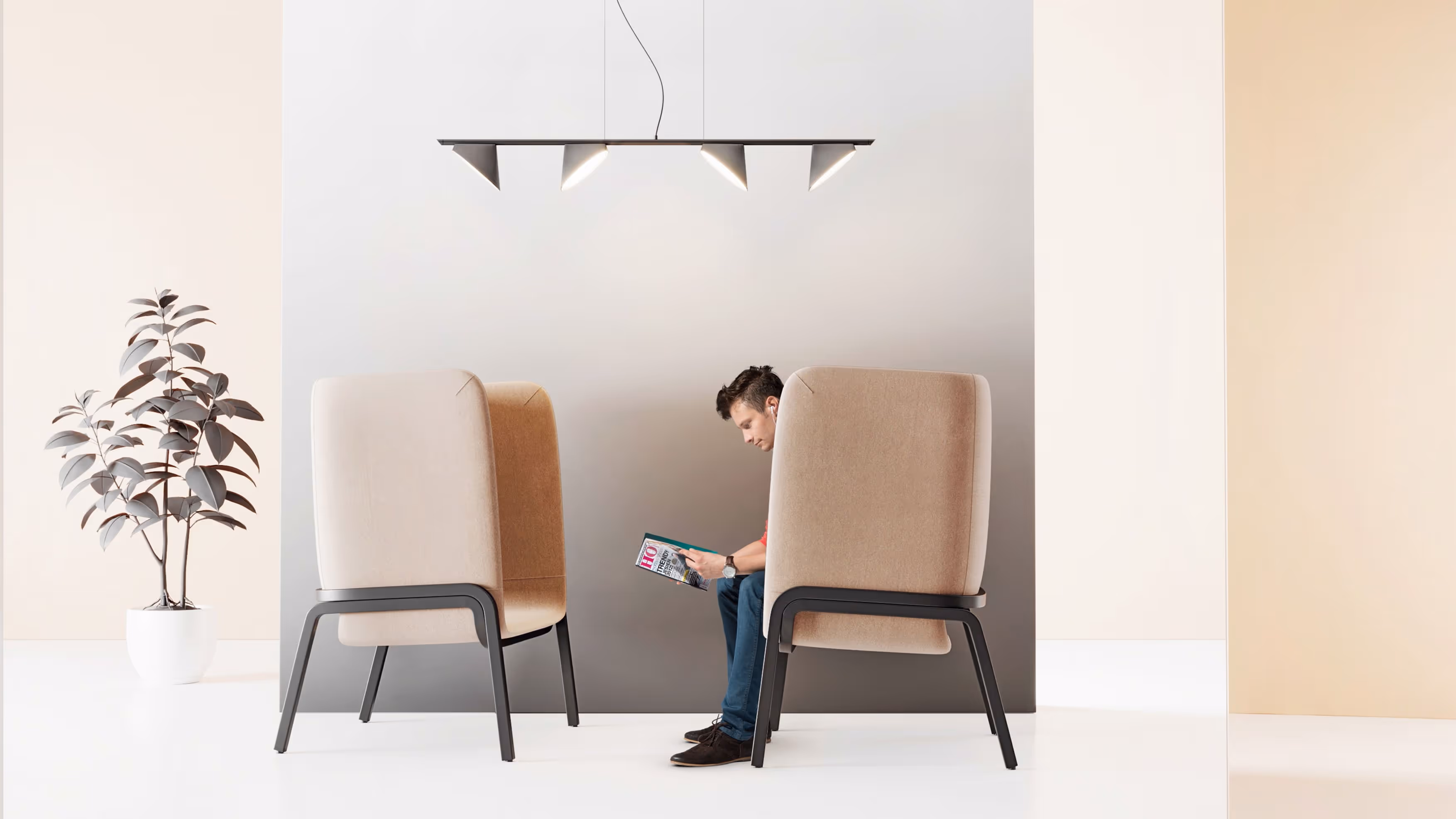 The idea: Our new series of Shhh chairs designed to create silence in a busy office. The chair wraps you with calmness and allows you to relax from work or dividing office space. The armchair with a high body will do it all thanks to the noise-absorbing materials.